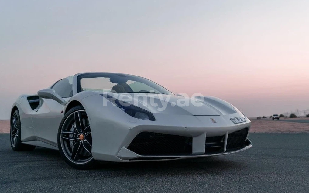 The opportunity to rent a White Ferrari 488 Spyder in Dubai is present throughout the year. However, the pricing fluctuates with the season: During the summer, or the "off-peak season" spanning from May to August, the Ferrari rates are more economical, and various concessions are accessible. The winter, or the "peak season," extends from September to April. During this interval, the rates for car rent witness an upward surge.